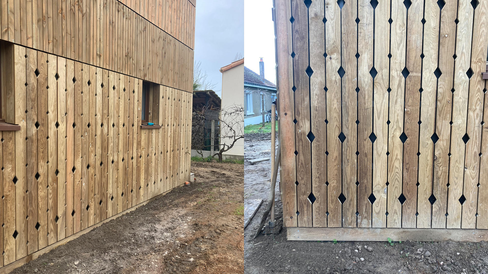 : A house and a greenhouseThe process for this 40 square meter house started by its positioning in the empty plot of land. With the condition of a 7m separation of the property limit, we proposed an orientation Est-West, making the house and its greenhouse to open towards the south.