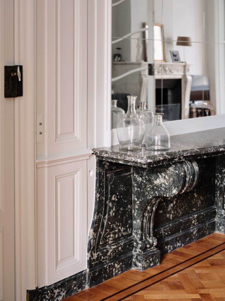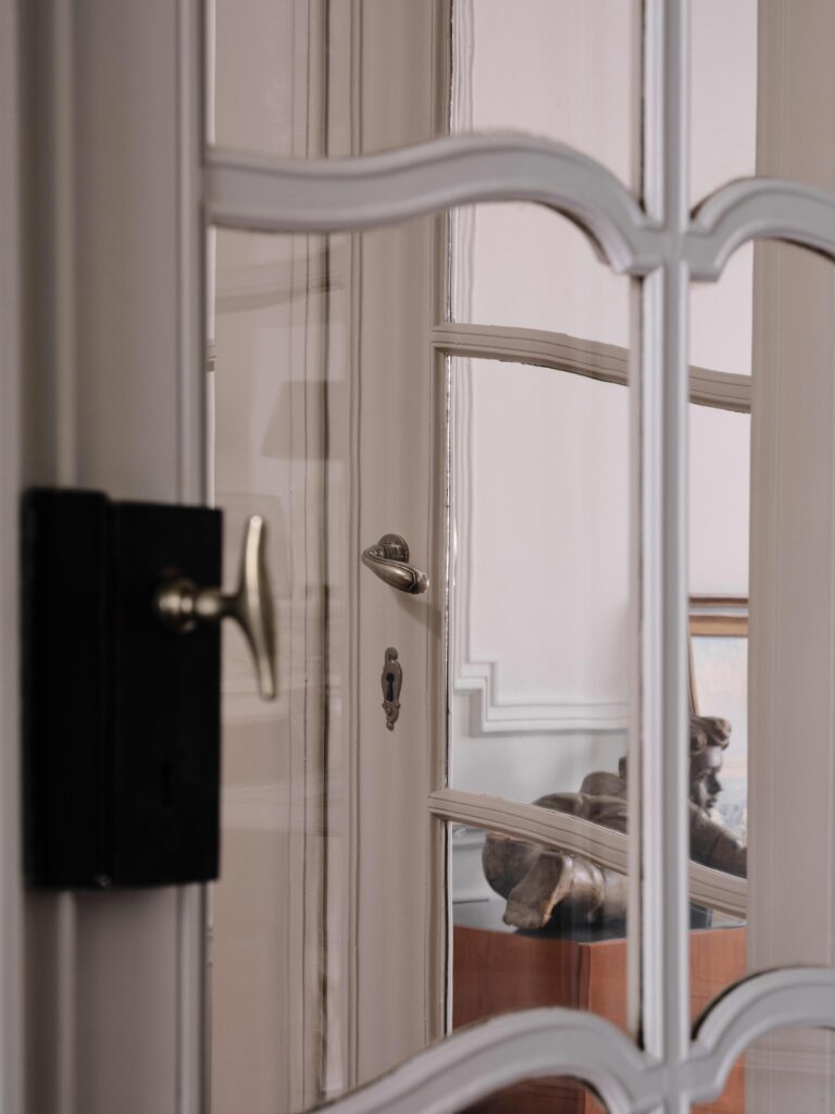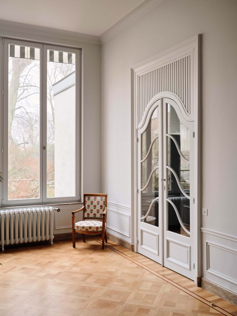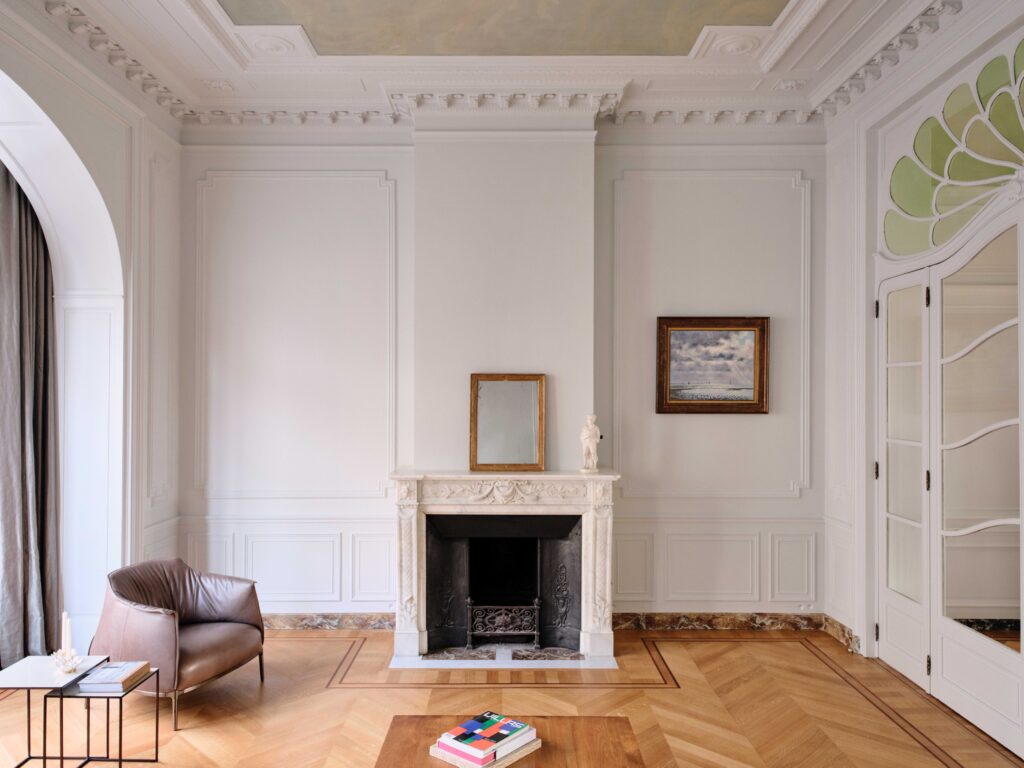 The intervention proposes a comprehensive and coherent redesign across all seven levels of the residence, using refined colors and noble materials to preserve its unique character. The spatial organization of the upper floors has been completely rethought to bring more light and fluidity to the circulation, optimizing each space while respecting the existing structure. The historical decorative elements, such as moldings, frescoes, and wood paneling, have undergone meticulous restoration by specialized craftsmen to restore their former splendor. Every furniture choice has been considered in detail, with custom-made pieces that blend harmoniously with the volumes and the spirit of the place. The project highlights the richness of the past while infusing a discreet and elegant modernity. The entire project demonstrates a profound respect for Brussels’ architectural heritage, combining tradition and innovation to offer a contemporary and refined interpretation of this exceptional residence.