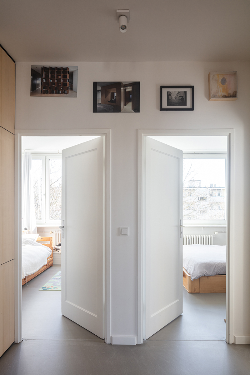 Berlin’s urban condition of housing is mostly defined by “Altbau” and “Plattenbau”. The Atlbau is the classical architecture from the late 19th century with high ceilings, thick bearing walls and a structure of large corridors with non-hierarchical rooms. The Plattenbau is the post wart architecture housing bloc, with rational and orthogonal shapes. The biggest advantage of the Plattenbau is that there are, most of the time, no structuring walls in the spaces, which gives the opportunity for a blank page for a renovation.