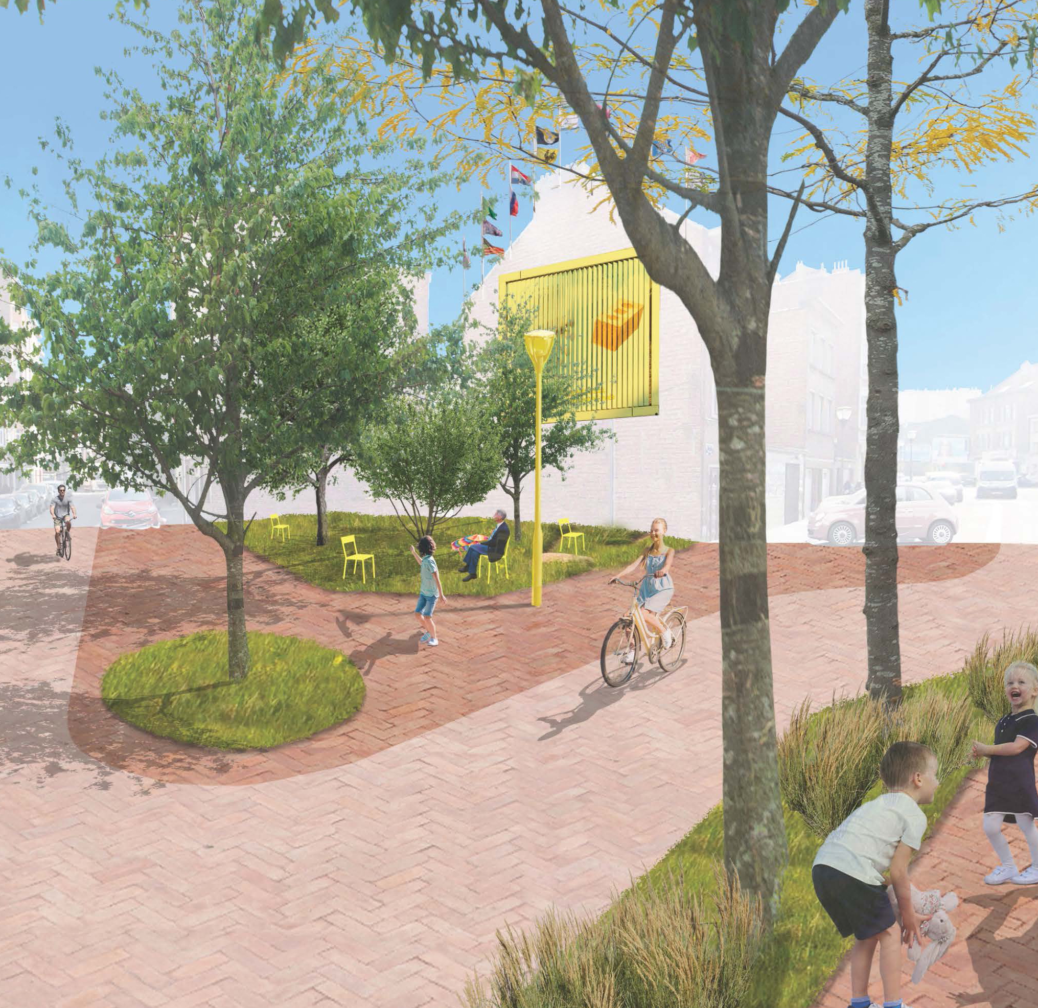 Read moreVegetation plays a central role, reinforcing ecological continuity, improving stormwater management, and creating a sensory and social experience. Street trees, isolated specimens, planted pockets, wetland zones, and fruiting shrubs are deployed to enhance biodiversity and provide edible landscapes linked to local community gardens. The former Parucq stream is revealed as a green axis connecting Victoria Park to the Schmitz block, while permeable surfaces, planted swales, and retention strategies optimize water infiltration and mitigate urban heat island effects. The plant palette is carefully selected for aesthetic, ecological, and pedagogical qualities, maximizing accessibility for maintenance and interaction with local residents.
