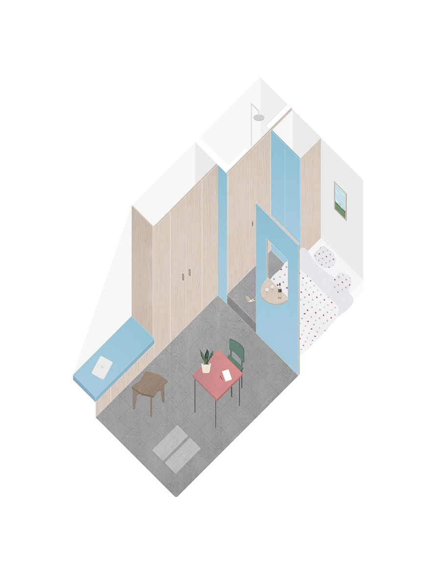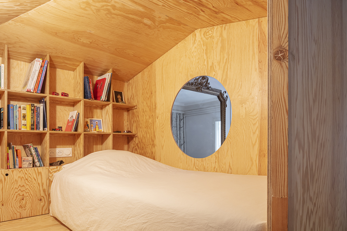 : Micro renewalsIn the Parisian context of aggressively expensive real estate, these apartments were missing space to host growing families. The projects consiste of offering privacy to each of the individuals by creating spaces and micro interventions within the apartment. Each of these houses offer a space for sleeping, working and playing, as well as a common space to meet.