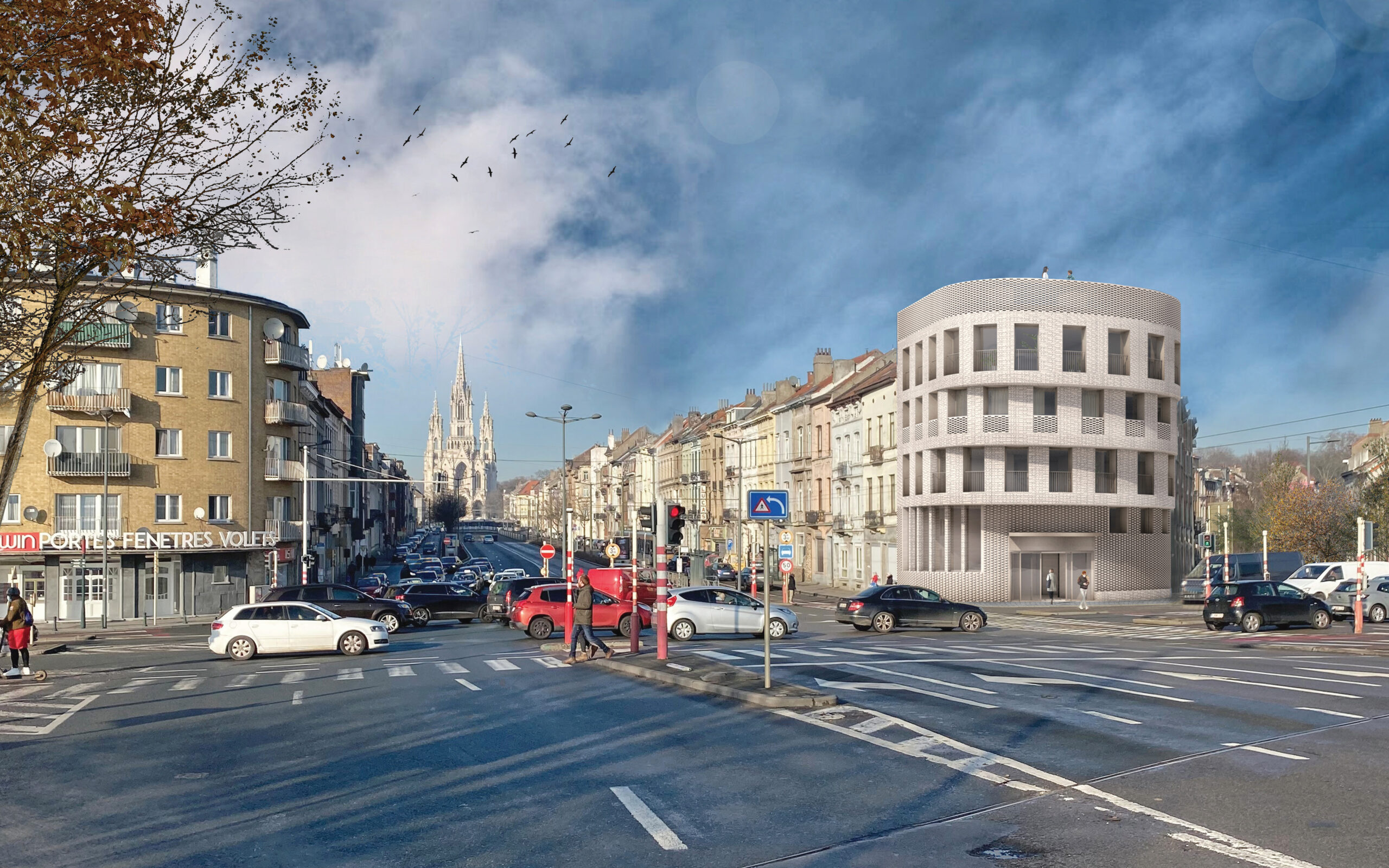 : Bridging PerspectivesThe site for the new corner building is located on the left bank of the canal, at the northern end of the Vergote basin. It enjoys a direct visual link with the future Monument to Labour Park and the De Trooz Park on the opposite bank. The project is embedded within one of Brussels’ most remarkable urban perspectives: the royal axis that connects the Place Liedts in Schaerbeek to the Church of Notre-Dame de Laeken, stretching nearly two kilometers.